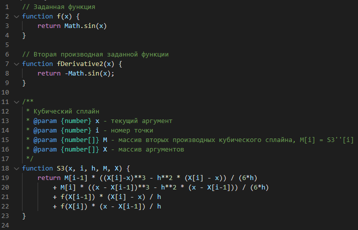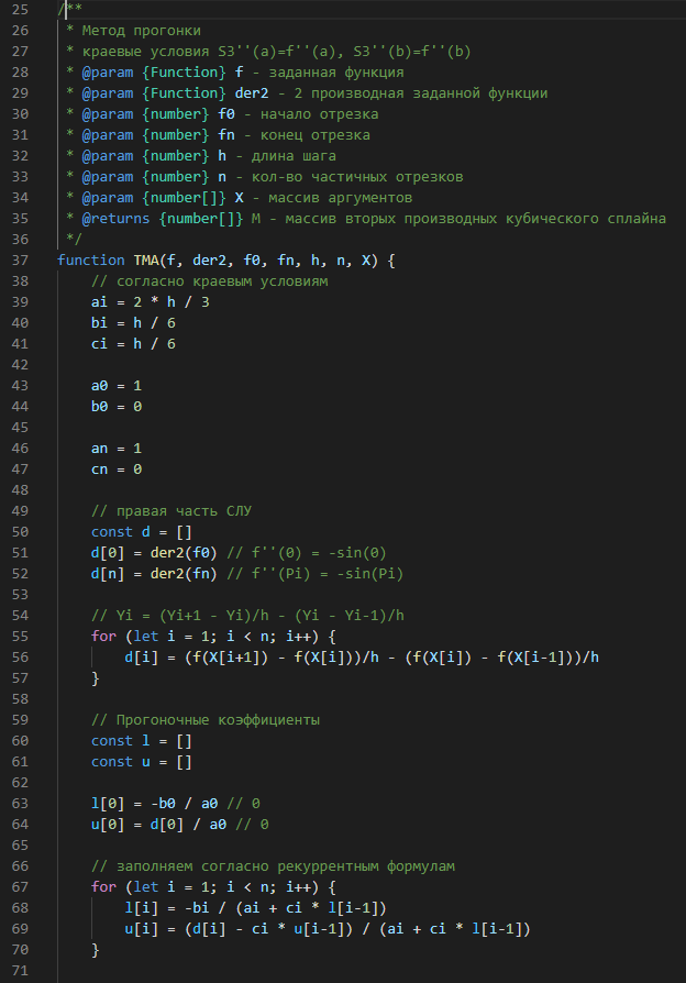 Ознакомились с задачей интерполяции функций sin x, с методом прогонки для решения систем линейных алгебраических уравнений с ленточной матрицей, с понятием сплайна. Запрограммировали задачу на ЭВМ и получили решение.
