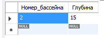 Сделаем выборку по Номеру бассейна и глубине бассейна, где содержится название «Касатка»