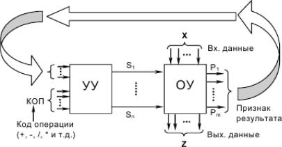 устройств – операционного (ОУ) и управляющего (УУ) (ОУ – выполняет указанные элементарные операции; УУ – управляет ОУ, задавая необходимую