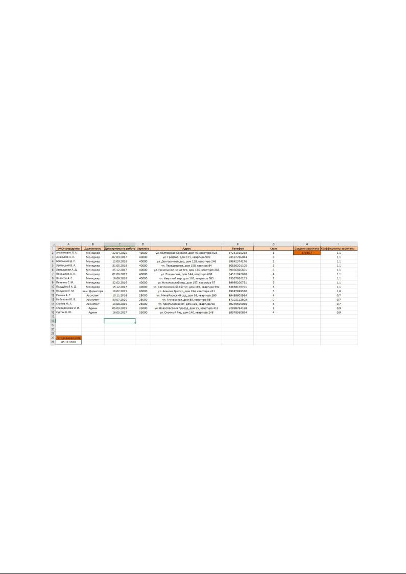 На рисунке 1 изображена таблица с информацией о сотрудниках.