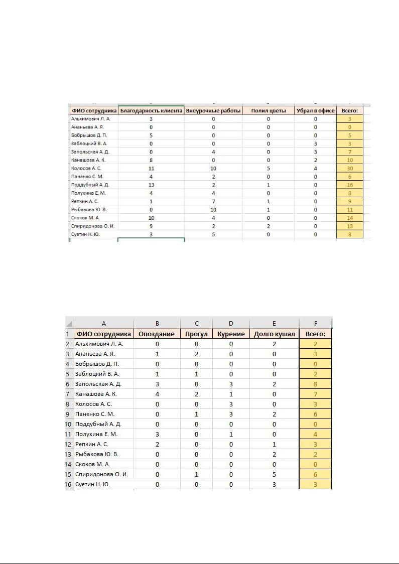 На рисунке 2 изображена таблица с информацией о премиальных баллах. Формула, по которой осуществляется подсчет количества баллов: F7=B7+C7+D7+E7