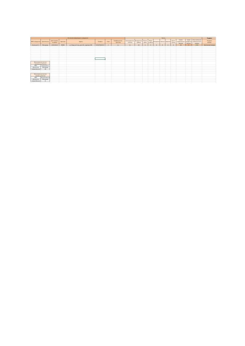 На рисунке 5 изображена таблица с возможностью поиска информации о сотруднике. Формулы, используемые в таблице: