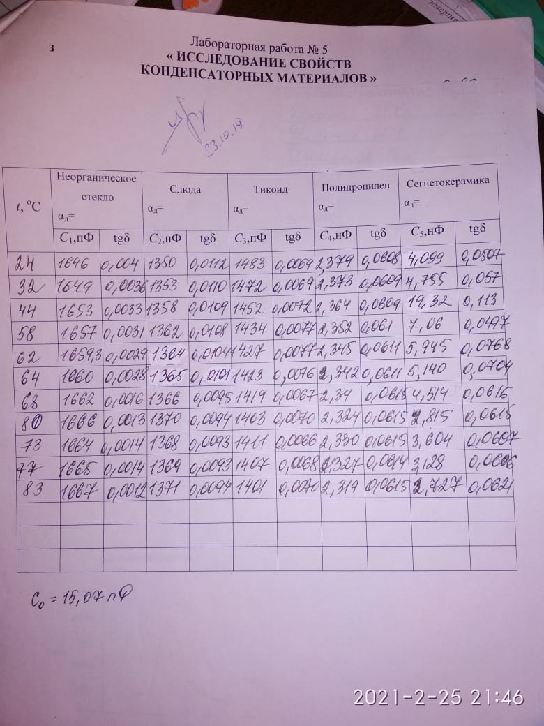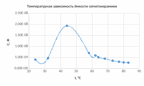 По экспериментальным данным таблицы протокола наблюдений построим температурные зависимости емкости исследованных образцов С(t), а также построим температурные зависимости тангенса угла диэлектрических потерь исследованных образцов.