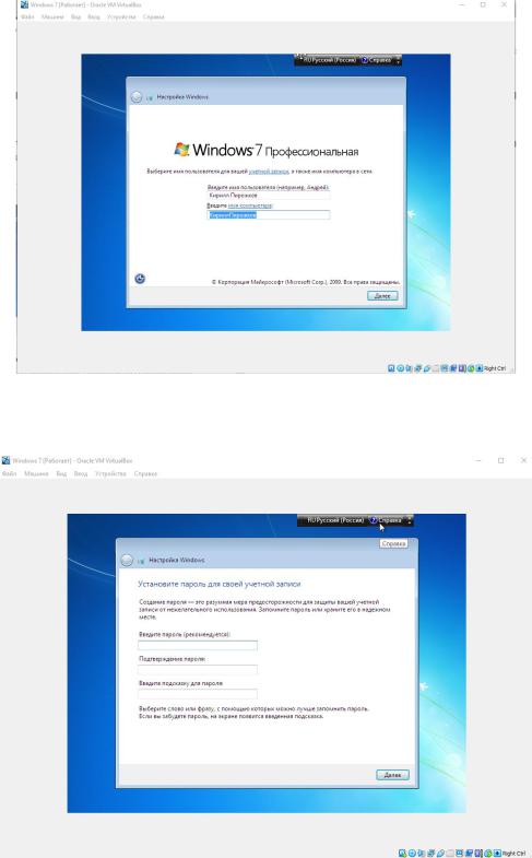 Рисунок 13 – Ввод имени пользователя Можно установить пароль для обеспечения безопасности учетной записи.