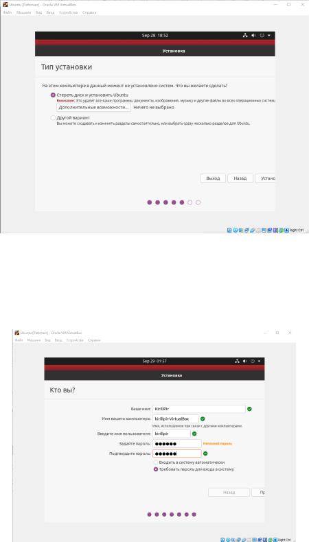 Рисунок 8 – Настройка пользователя Завершается установка и настройка системы, после которой виртуальная