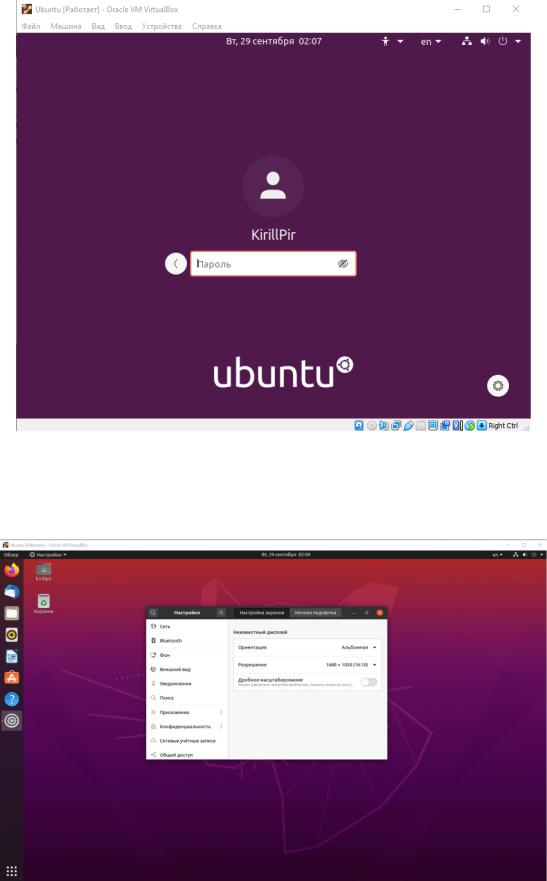 машина перезагружается и загружается с виртуального жесткого диска, на которою мы устанавливали систему. Входим после перезагрузки с помощью пароля придуманного ранее.
