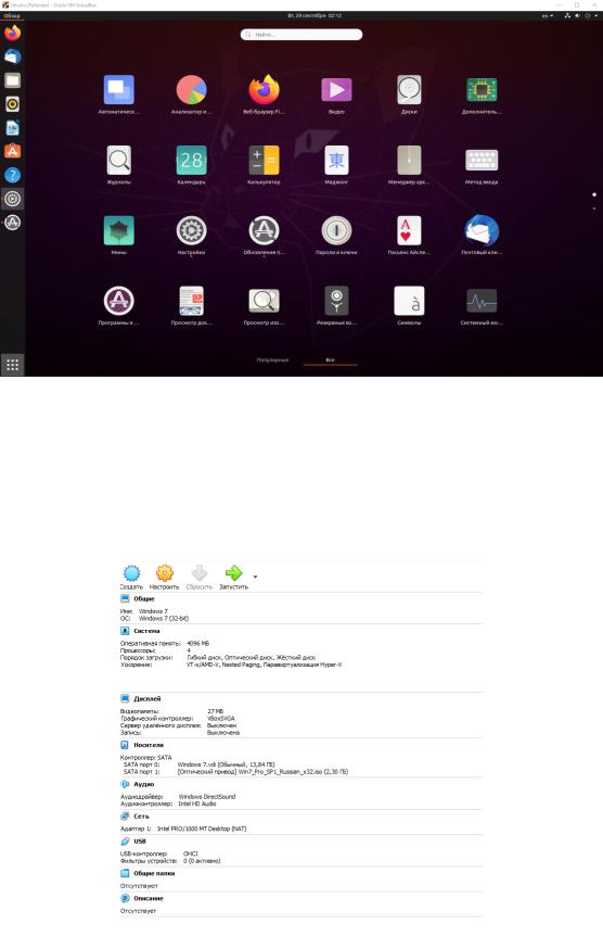 Рисунок 11 – Список приложений Установка ОС Ubuntu на виртуальную машину завершена.