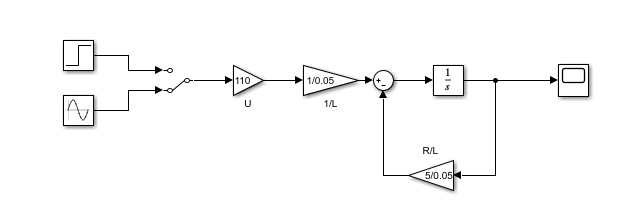 Рассчитать переходные процессы в электрической R-L цепи постоянного и переменного тока при решении дифференциального уравнения с использованием пакета Матлаб/Симулинк.
