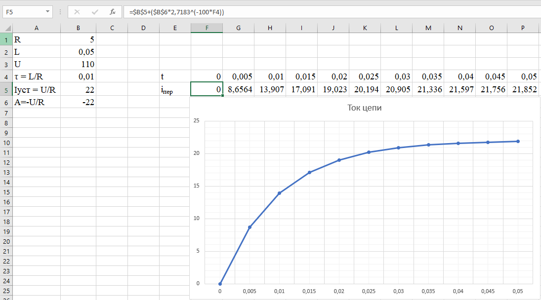 Рассчитать переходные процессы в электрической R-L цепи постоянного тока при решении дифференциального уравнения аналитическим методом;