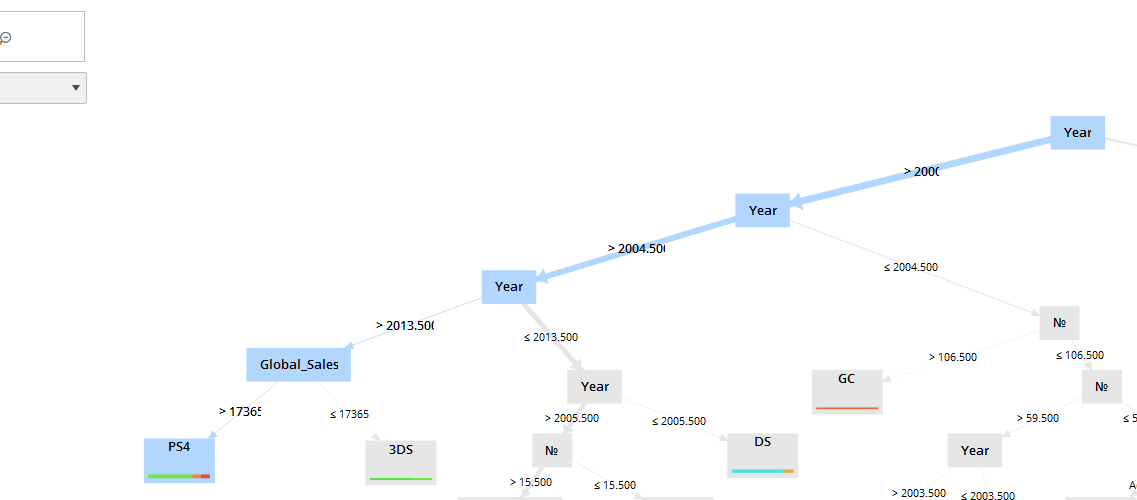 На примере рисунка 11 видно, что благодаря такому представлению данных моего набора можно легко проследить до нижних уровней соотношение каждого элемента. Например, в промежуток с середины 2013 года по середину 2014 продажи игр на платформе PS4 превысило 17365 тысяч экземпляров (рисунок 11)