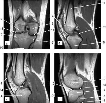 Рис. 7. МР-томограмма коленного сустава (а -