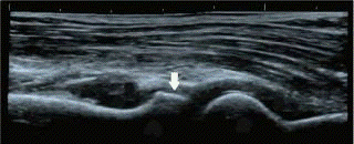 Рис. 8. УЗИ локтевого сустава (норма). Стрелкой