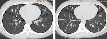 сегментов легких в легочном электронном окне: