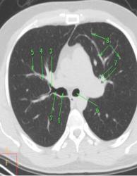 7– поперечные сечения сегментарных бронхов;