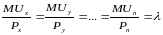 де MUx, MUy, …, MUn – гранична корисність, відповідно блага х, у, ….n;