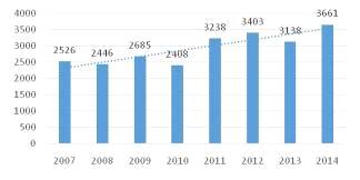 впродовж 2007-2014 рр. спостерігається стійка тенденція до зростання кількості