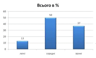 всіх випадків їх виникнення. А найменша кількість травм відноситься до легкого