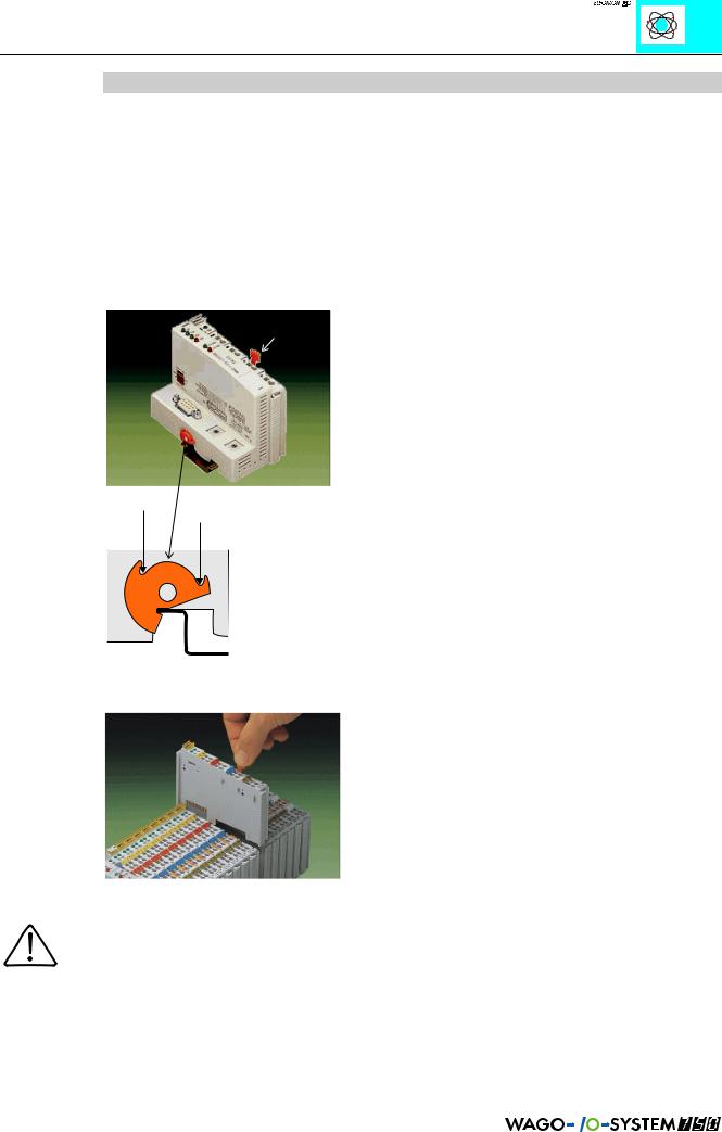 A ordem dos terminais analógicos e digitais é irrelevante para o engate. O posicionamento seguro e a ligação do acoplador/controlador e dos diversos terminais bus é efetuado por meio de um sistema de encaixe de molas. Devido ao travamento automático, depois da montagem, os vários componentes encontram-se bem fixados no trilho.
