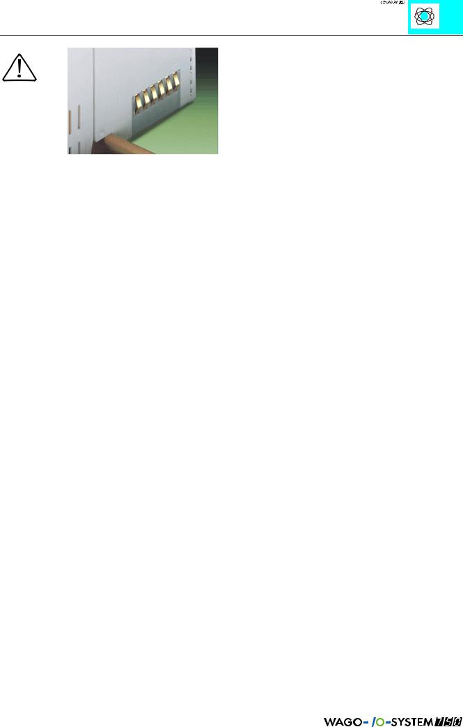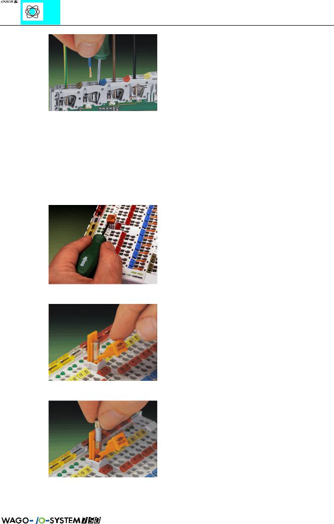 Os terminais de alimentação do WAGO-I/O- SYSTEM 750 estão parcialmente equipados com um dispositivo de suporte do fusível. Para comutar os terminais seguintes sem tensão, deve retirar-se o dispositivo de suporte do fusível. Para tal, pode inserir uma chave de fendas em uma das ranhuras existentes em ambos os lados e levantar o suporte.