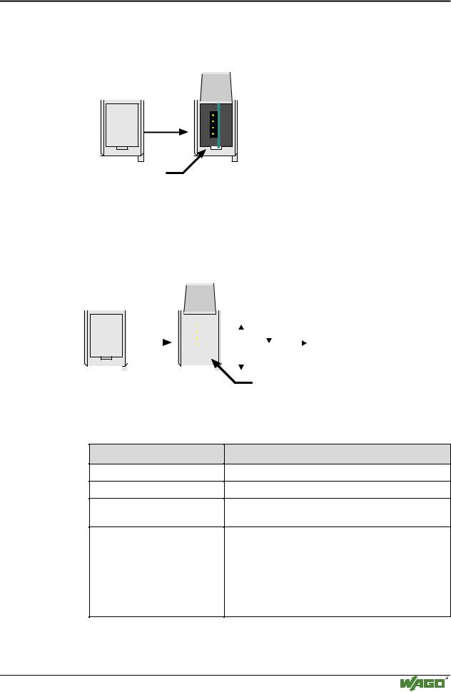 Die Konfigurationsschnittstelle befindet sich hinter der Abdeckklappe. Sie wird fü r die Kommunikation mit WAGO-I/O-CHECK und zum FirmwareDownload genutzt.