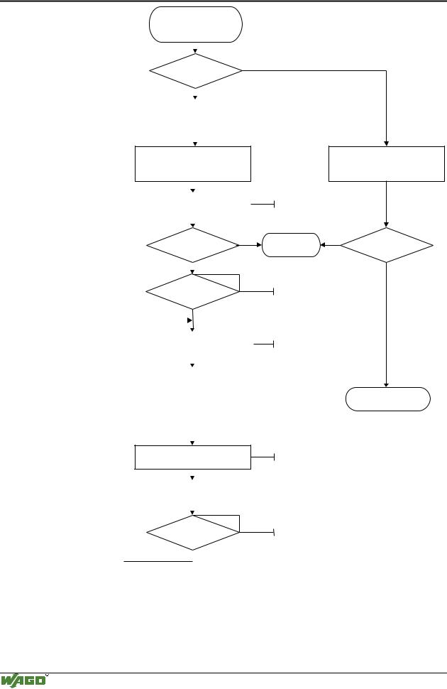 Nach fehlerfreiem Hochlauf startet der PFC-Zyklus bei oberer Stellung des Betriebsartenschalters oder durch einen Start-Befehl aus WAGO-I/O-PRO 32. Die Einund Ausgangsdaten des Feldbusses und der Busklemmen sowie der Werte von Zeitgebern werden gelesen. Anschließend wird das im RAM vorhandene PFC-Programm bearbeitet und danach die Ausgangsdaten des Feldbusses und der Busklemmen ins Prozessabbild geschrieben. Am Ende des PFC-Zyklus werden Betriebssystemfunktionen u. a. fü r Diagnose und Kommunikation ausgefü hrt und die Werte von Zeitgebern aktualisiert. Der Zyklus beginnt erneut mit dem Einlesen der Einund Ausgangsdaten und der Werte von Zeitgebern.