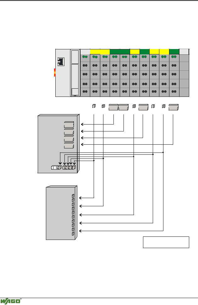 In den Beispielen ist die entsprechende Busklemme jeweils die erste byteweiseorientierte Klemme, die hinter dem Feldbus-Controller gesteckt ist.