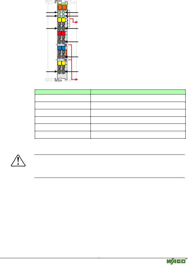Die Beschreibung der Eingänge im WAGO Ringordner (Stand 4/96 Blatt 888- 530/020-101) ist nicht richtig. Die beiden unteren Kontakte sind mit zusätzlichen Ausgängen belegt.