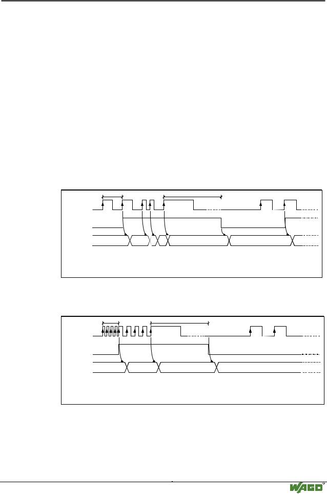 Wenn keine Signalwechsel am CLOCK Eingang vorkommen, kann das Modul eine Aktualisierung des Prozessabbilds auch nach definierten parametrierbaren Zeitspannen vornehmen. In diesem Fall wird das Modul ebenfalls den ungü ltigen Wert 0xFFFFFFFFH aussenden.