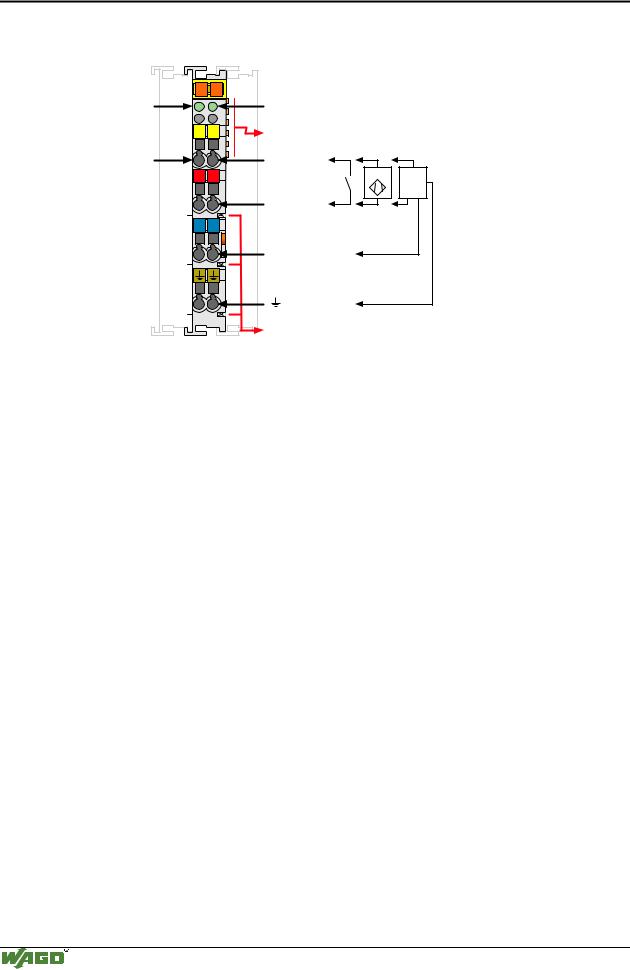 Bei den 4-Kanal Digital Eingängen kö nnen zwei Sensoren in 3-Leiter- Anschlusstechnik (Ub, 0 V, Signal) direkt angeschlossen werden. Fü r den Anschluss weiterer Sensoren an Ub und 0 V steht die Potentialvervielfachungsklemme 750-614 zur Verfü gung.