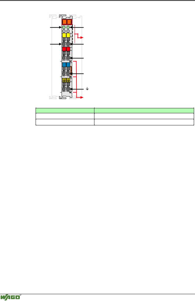 Die Versorgungsspannung von DC 24V wird ü ber die Leistungskontakte an die Klemme gefü hrt.