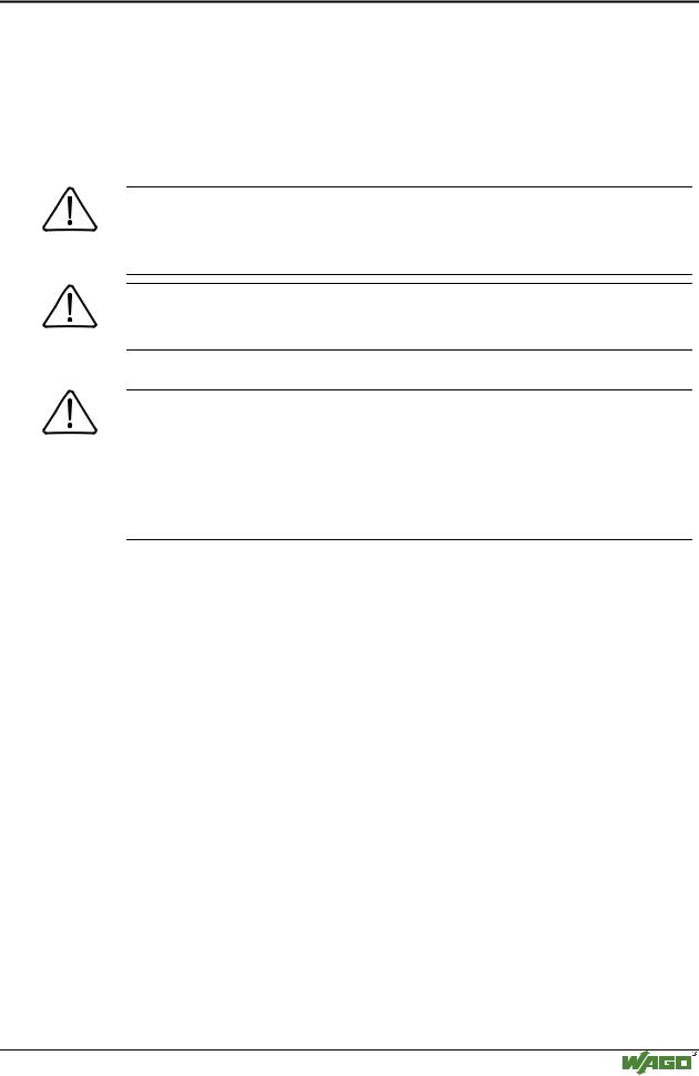 Durch Herausziehen oder Stecken der Busklemmen unter Spannung kann es zu undefinierten Zuständen kommen. Arbeiten an den Busklemmen sollten deshalb nur im ausgeschalteten Zustand durchgefü hrt werden!