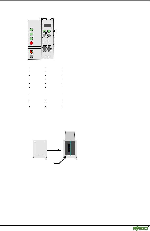 Die Konfigurationsschnittstelle befindet sich hinter der Abdeckklappe. Sie wird fü r die Kommunikation mit WAGO-I/O-CHECK und zum FirmwareDownload genutzt.