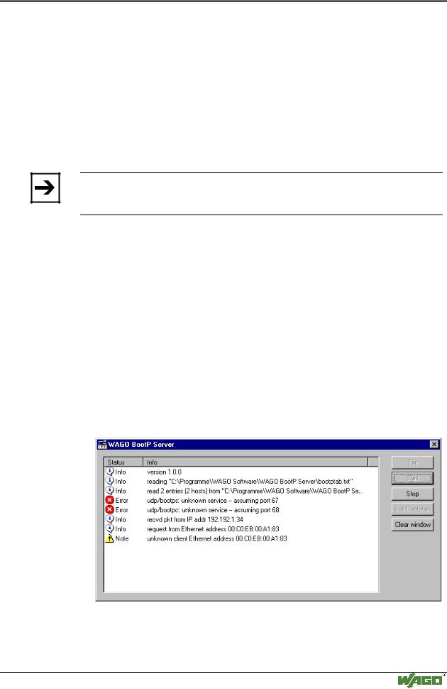 Voraussetzung fü r die folgenden Schritte ist, dass der WAGO BootP Server korrekt installiert ist.