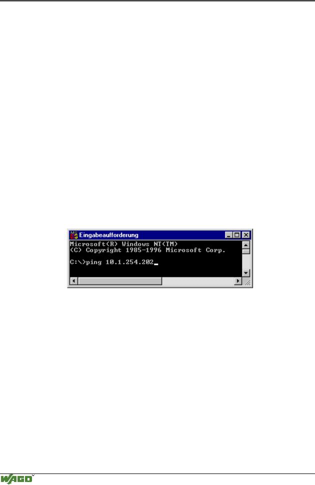 ping [Leerzeichen] XXXX . XXXX . XXXX . XXXX (=IP-Adresse). Beispiel: ping 10.1.254.202