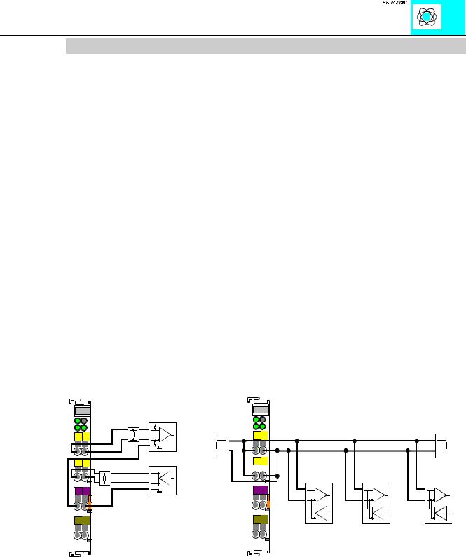 Some modules do not provide all power jumper contacts (e.g. 4-channel)! A module which needs all contacts (e.g. 2 channel digital) cannot be connected to the right hand side of modules which do not have 3 power jumper contacts.