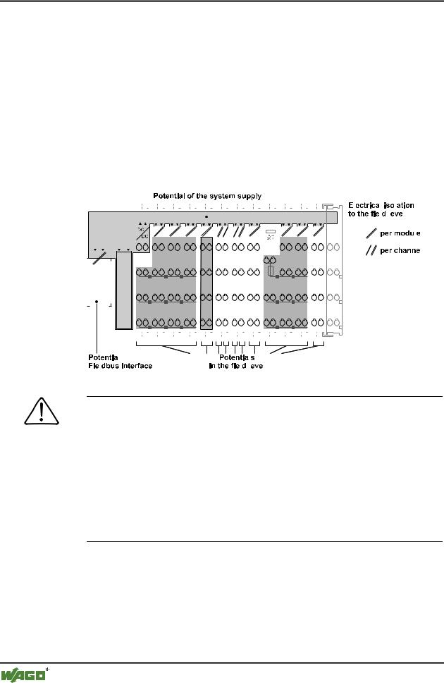 Within the fieldbus node, there are three electrically isolated potentials.