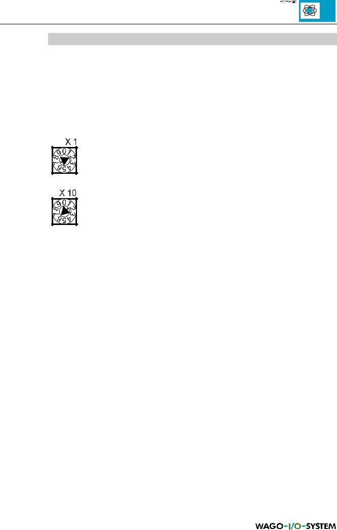 The station address is set using both coding switches. The settable address is within the 01 and 99 range. The value 00 is reserved for the programming and configuration mode.