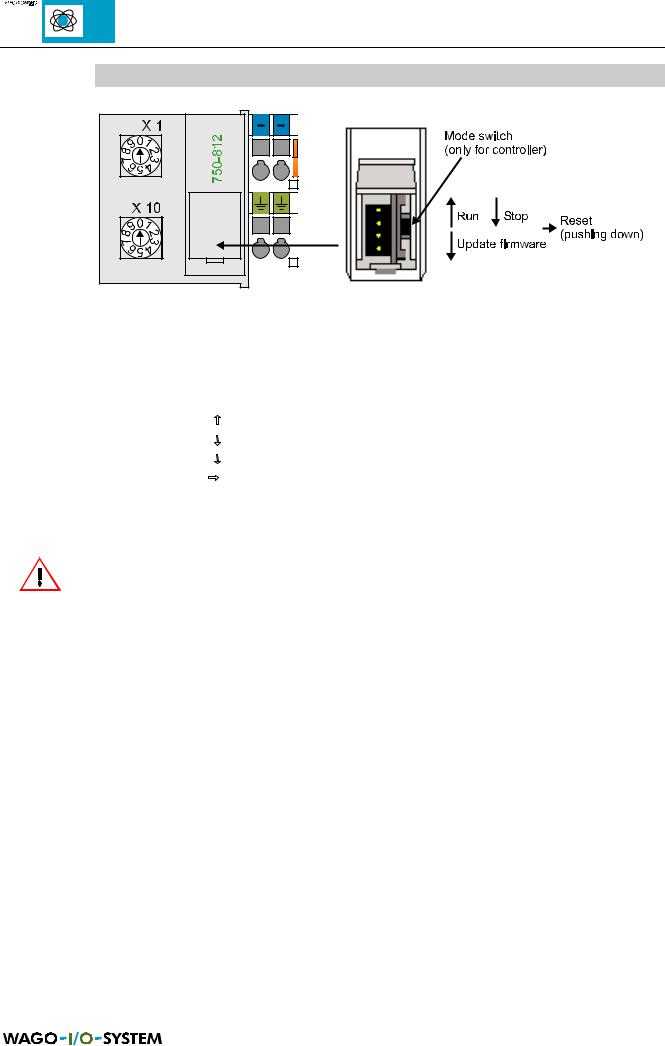 If when changing over the mode switch from ‘Run’ to ‘Stop’ outputs are still activated, these will remain in this status! Switching off on the software side, e.g. by initiators is then ineffective because the program will no longer be processed!