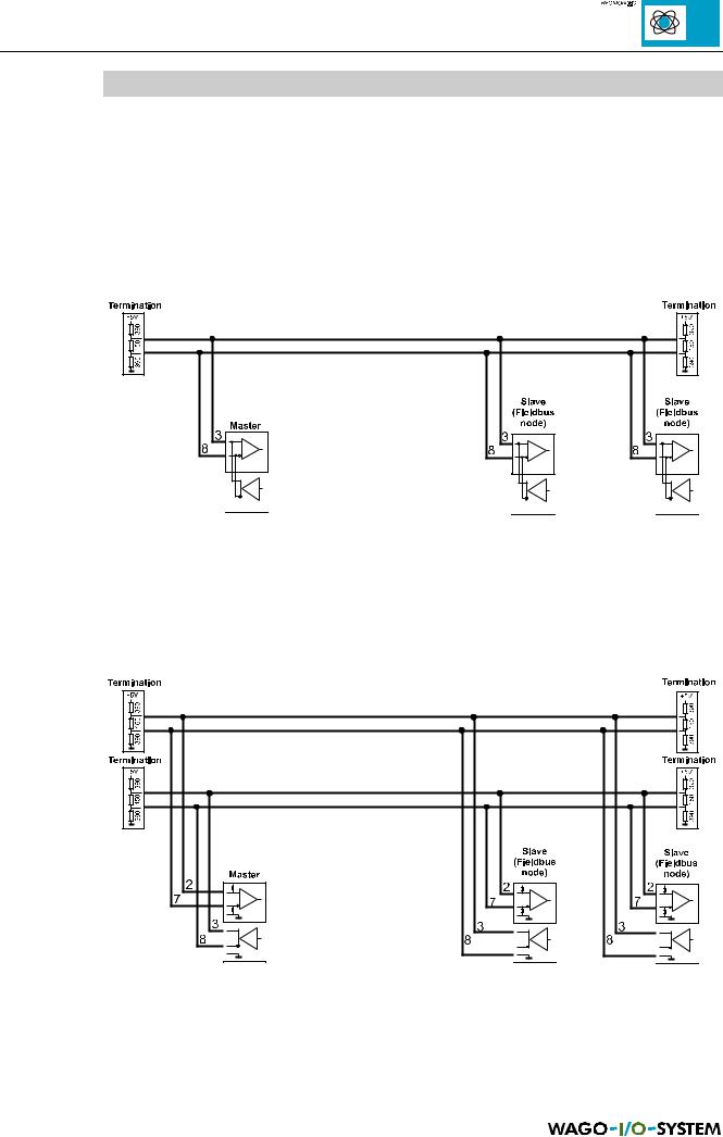 One transmission medium for the MODBUS is RS485, whereby, 2 or 4 wire can be used. The following figure shows an example for a 2 wire version:
