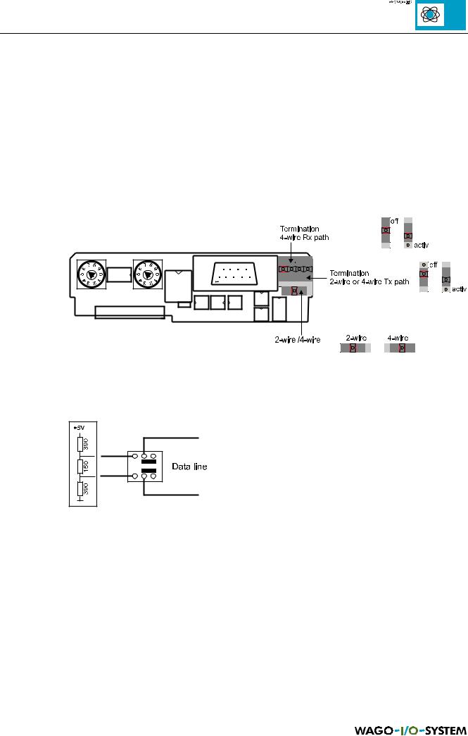 For 2 wire connections RxD and TxD are short circuited. By the termination, a series circuit comprising of 3 resistors is connected to the bus conductor terminations.