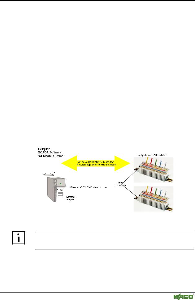 Dennoch sind im Folgenden einige wesentliche Schritte aufgeführt, die veranschaulichen sollen, wie eine Applikation mit einem WAGO ETHERNET Feldbusknoten und einer SCADA Software prinzipiell entwickelt werden kann.