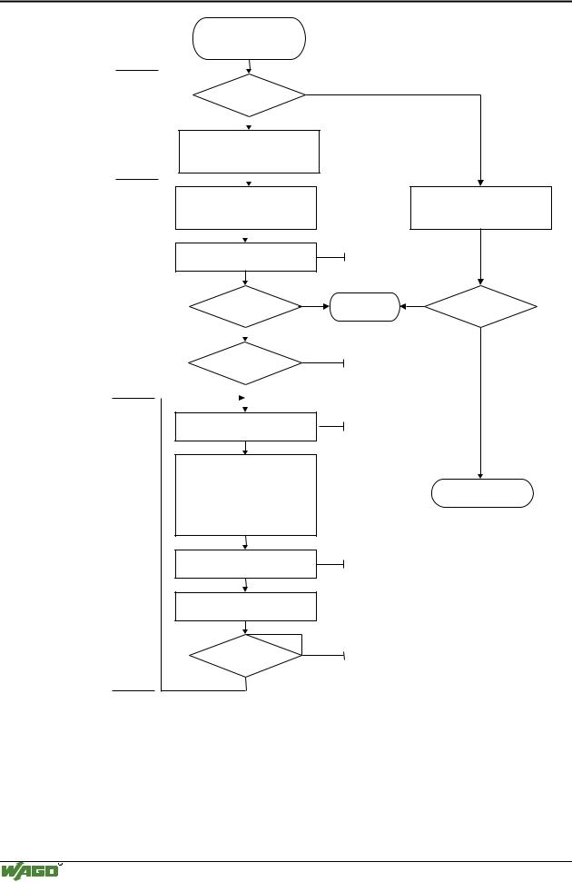 Nach fehlerfreiem Hochlauf startet der PFC-Zyklus bei oberer Stellung des Betriebsartenschalters oder durch einen Start-Befehl aus WAGO-I/O-PRO. Die Einund Ausgangsdaten des Feldbusses und der Busklemmen sowie die Werte von Zeitgebern werden gelesen. Anschließend wird das im RAM vorhandene PFC-Programm bearbeitet und danach die Ausgangsdaten des Feldbusses und der Busklemmen ins Prozessabbild geschrieben. Am Ende des PFC-Zyklus werden Betriebssystemfunktionen u. a. für Diagnose und Kommunikation ausgeführt und die Werte von Zeitgebern aktualisiert. Der Zyklus beginnt erneut mit dem Einlesen der Einund Ausgangsdaten und der Werte von Zeitgebern.