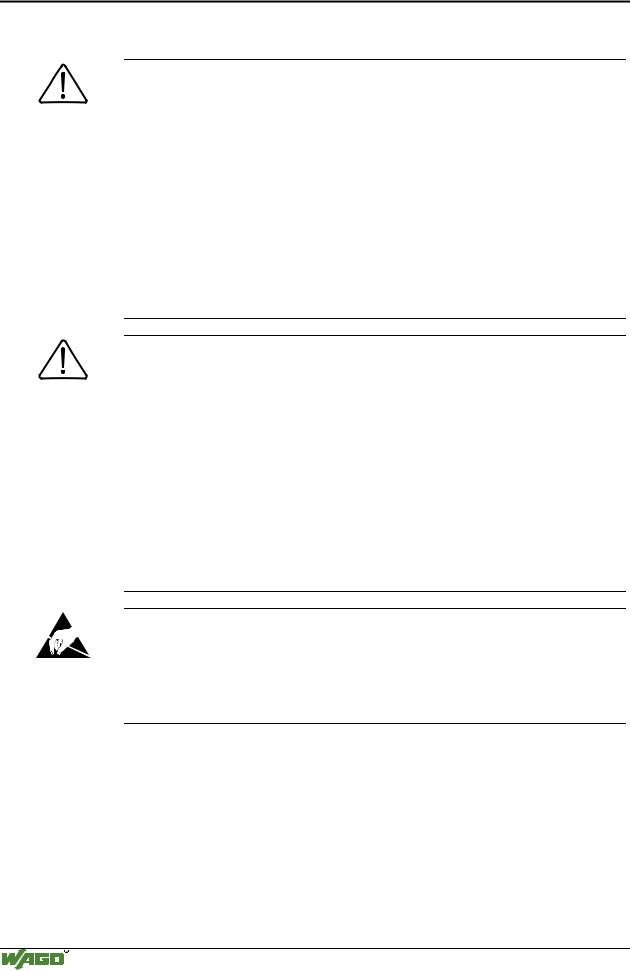Das WAGO-I/O-SYSTEM 750 mit seinen Komponenten ist ein offenes Betriebsmittel. Es darf nur in Gehäusen, Schränken oder in elektrischen Betriebsräumen aufgebaut werden. Der Zugang darf nur über Schlüssel oder Werkzeug von autorisiertem Fachpersonal erfolgen.