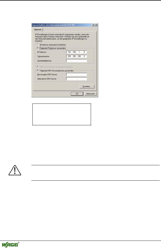 Abb. 3: Einstellungen der Netzwerkkarte des PCs