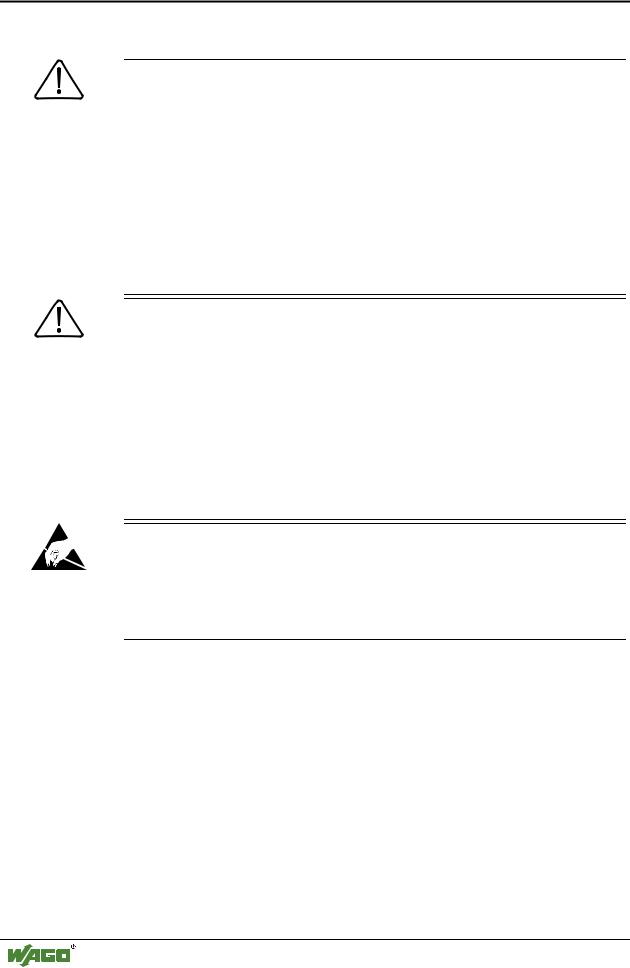 Das WAGO-I/O-SYSTEM 750 mit seinen Komponenten ist ein offenes Betriebsmittel. Es darf nur in Gehäusen, Schränken oder in elektrischen Betriebsräumen aufgebaut werden. Der Zugang darf nur über Schlüssel oder Werkzeug von autorisiertem Fachpersonal erfolgen.