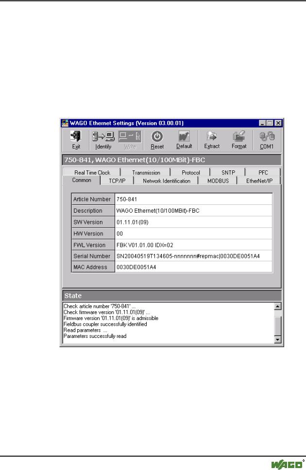 Die IP-Adressvergabe erfolgt komfortabel über das beiliegende serielle Programmierkabel und dem Programm „WAGO Ethernet Settings“. Verbinden Sie Ihren PC mit der Konfigurationsund Programmierschnittstelle des Knoten.