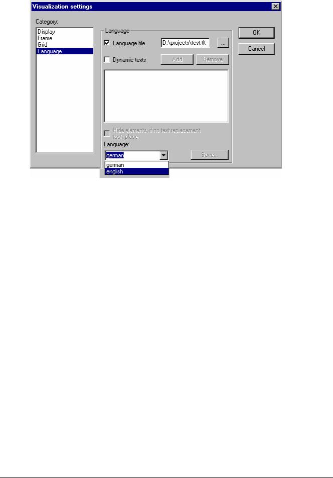 Dialog for selection of a language file for a visualization