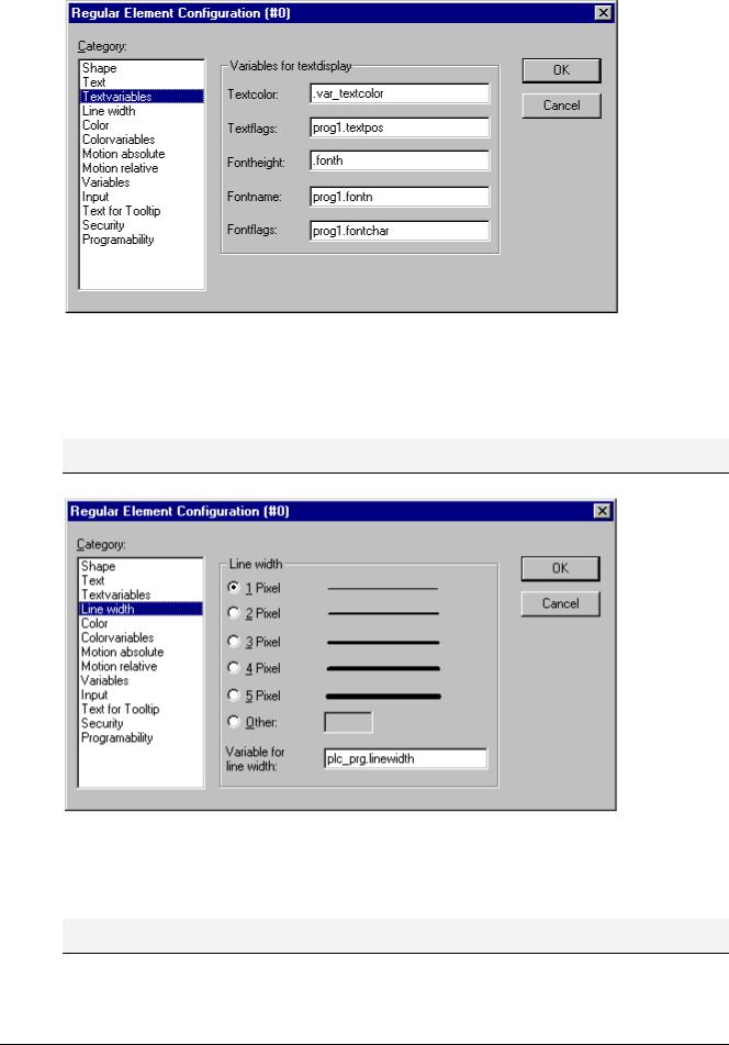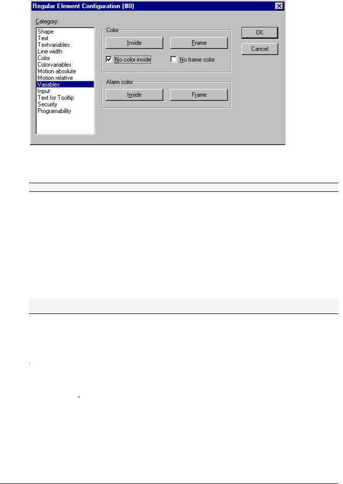 Note: The variables, entered in the Color Variables dialog, in online mode will overwrite the static values given in the 'Color' category as well as corresponding values given by a structure variable.
