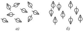 отсутствии (а) и наличии (б) внешнего магнитного поля