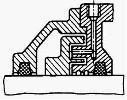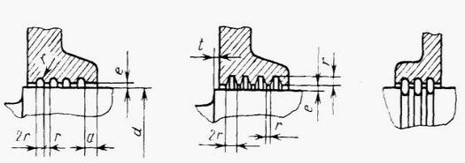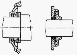 Канавочные уплотнения (рисунок 1.9). Щели концентрических проточек заполняют пластичной смазкой. Образуемый затвор препятствует вытеканию масла и ограничивает проникновение посторонних веществ извне. Применять канавочные уплотнения рекомендуется для узлов, работающих сравнительно чистой среде. Канавки очень полезны в комбинации с уплотнениями другого типа.